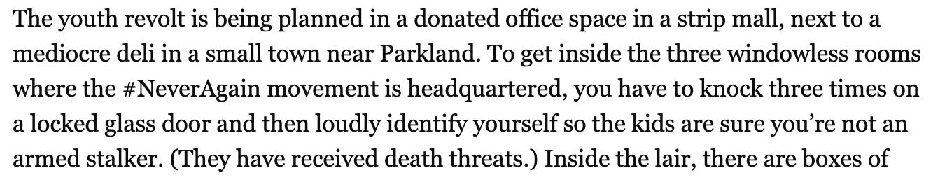 Alter, C. (2018). http://time.com. [online] Time. Available at: http://time.com/longform/never-again-movement/ [Accessed 15 May 2019].