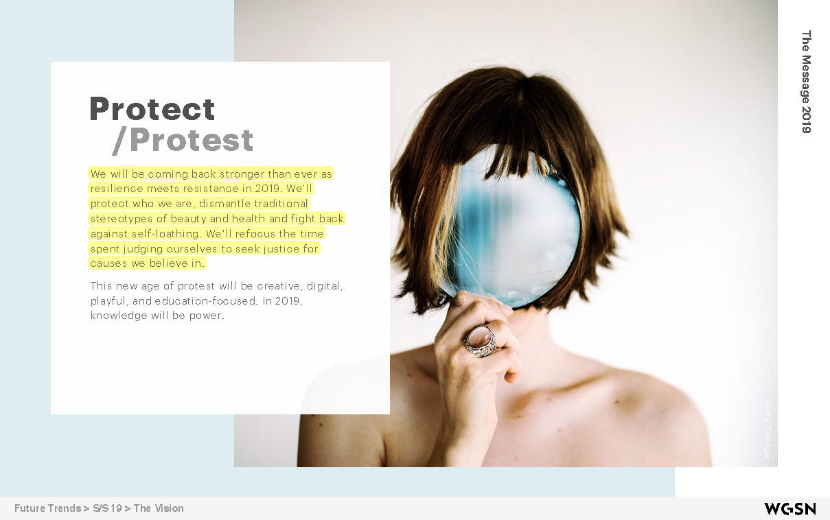 WGSN. (2017). The Message 2019 Part 1 - Action Reaction (pp. 3,6,7). WGSN.