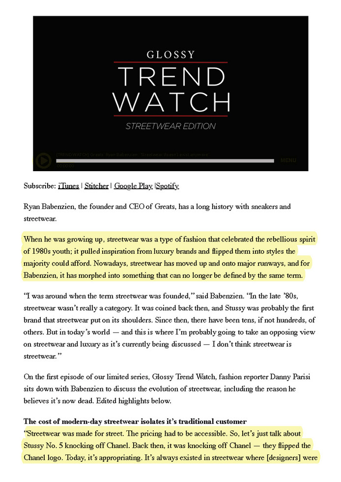 Babenzien, R. (2019). Greats' Ryan Babenzien: 'Streetwear doesn't exist anymore' – Glossy. Retrieved from https://www.glossy.co/podcasts/greats-ryan-babenzien-streetwear-doesnt-exist-anymore